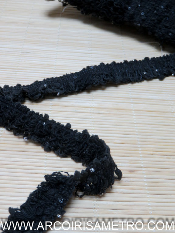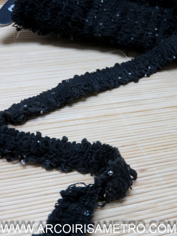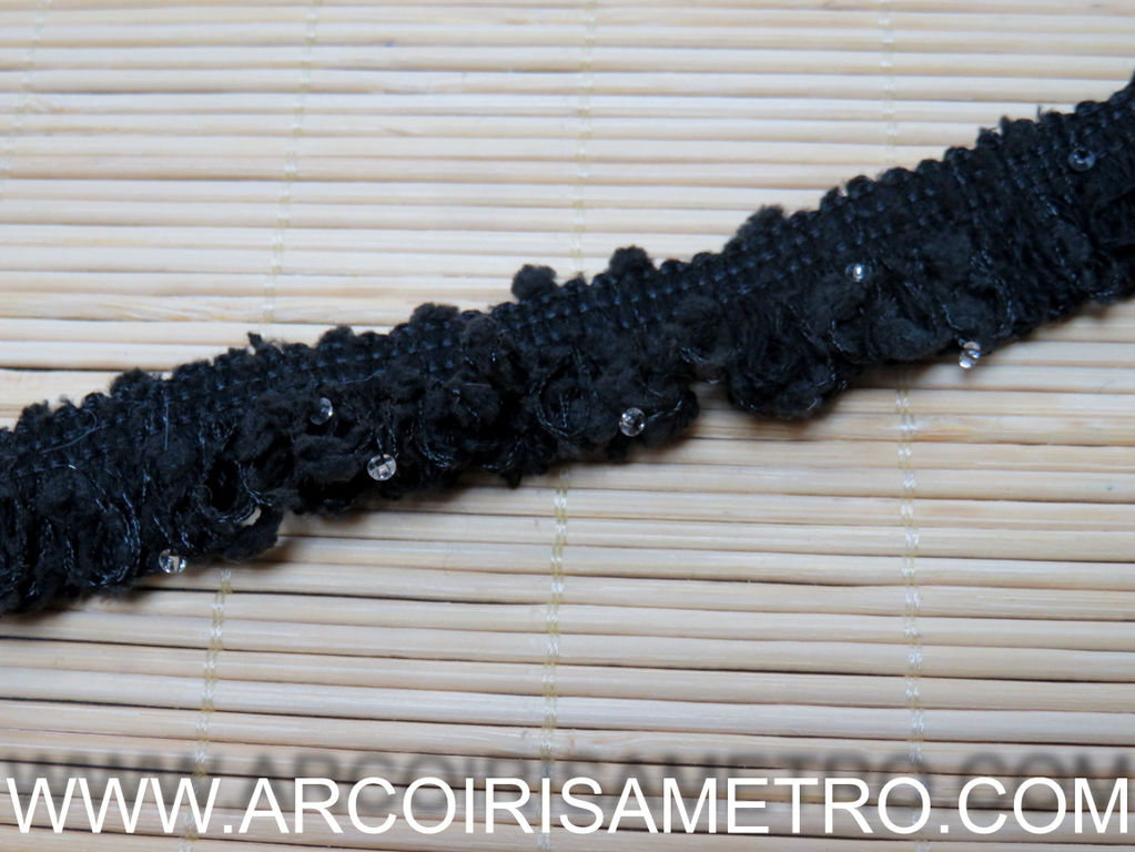 CHANEL STYLE TRIM - BLACK WITH BEADS 25MM