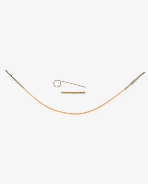 The cable features a 360-degree swivel that lets the tips turn freely, preventing twisting and tangling. It’s made from twisted steel encased in a smooth nylon coating, allowing yarn to glide effortlessly.