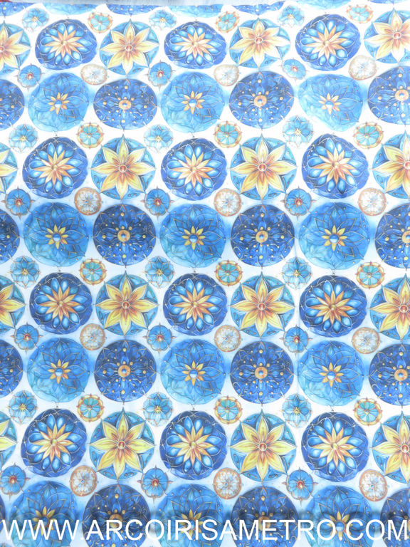Alcobaça chita - Light Blue with roses