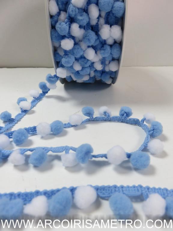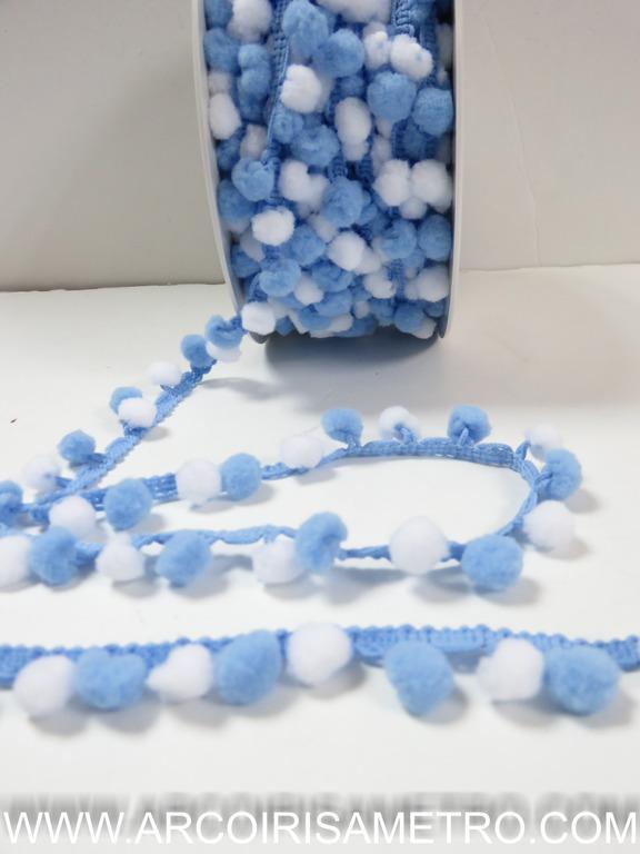 pompons mini BI-COLOR - azul & branco